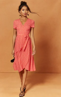 Penelope Wrap Midi Dress In Red Ditsy Print