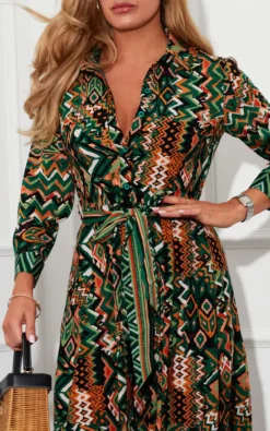 Unleash your tribal instinct in our Angela Green & Orange Shirt Maxi Dress! Featuring a intricate print design, 3/4 sleeve and belt to cinch you in at the waist, creating a gorgeous silhouette. Dress this classic style up or down for every occasion this season!