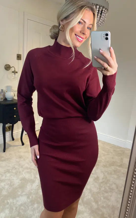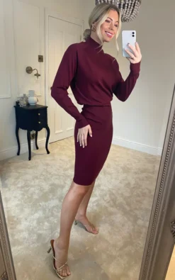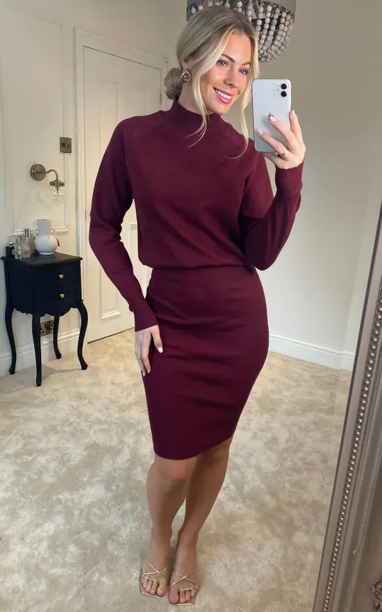 An alternative to tailoring, this deep burgundy knitted dress is perfect for the office. We love the fitted skirt and relaxed top, as well as it’s long sleeves.