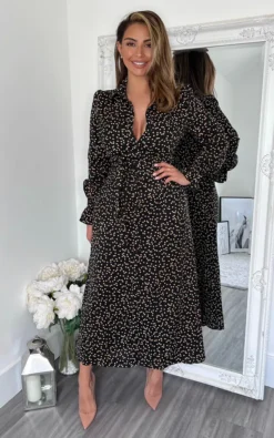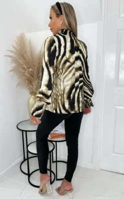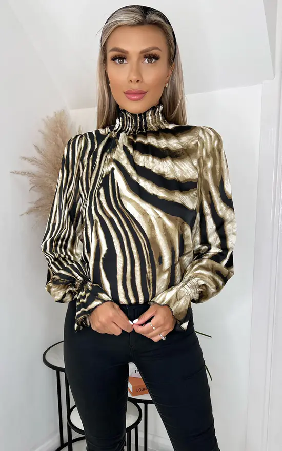 This is our Brown Printed Long Sleeve Top, with an elasticated neckline and cuffs. This long sleeve style will look perfect with a pair of jeans or leather looks.