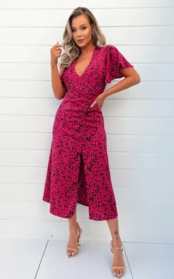 Feel super cute in this Multi Floral Printed Wrap Blouse. Taking your wrap top to the next level. Featuring a wrap over style neckline, frilled hem, short puff sleeves and a tie waist. Pair with jeans, heels and matching bag for a glam look!