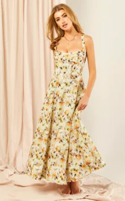 Golden age. An autumnal floral print imagined in warm honey and golden hues captures the renewed sense of optimism that comes with a change in season