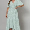 With a wrap front and a tie waist, this long sleeved midi dress is the way to go when you want to make a statement while staying classy.