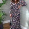 This beautiful abstract printed dress features a v neck and wrap style with silky fabric. An essential collection of your seasonal wardrobe. This wrap dress is suitable for summer/autumn outings, city breaks and beach holidays. Absolute MUST HAVE this season.