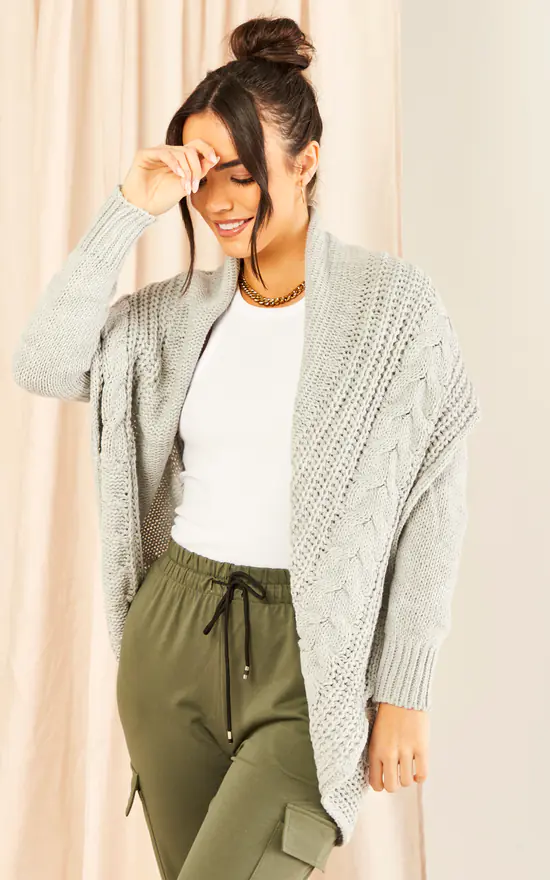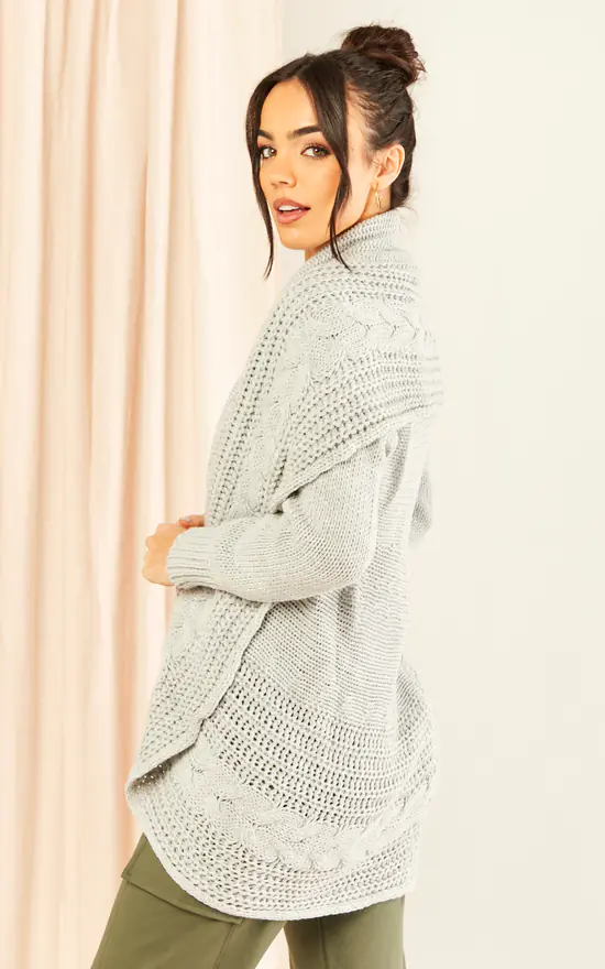 Chunky Pleat Long Cardigan In Light Grey
