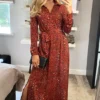 Make your fashion dreams come true in this stylish maxi shirt dress. Featuring slim-fitting sleeves with tie-cuffs and an attached buckle waist belt. Perfect for fancy and casual occasions, it’s the ultimate versatile maxi!