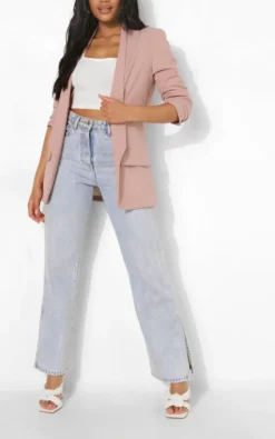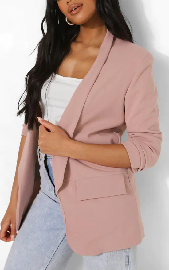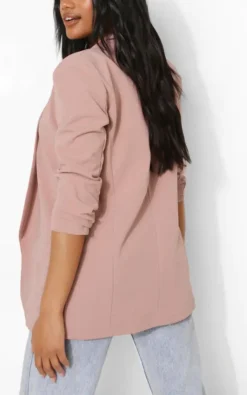 Dusty Pink Ruched Sleeve Blazer