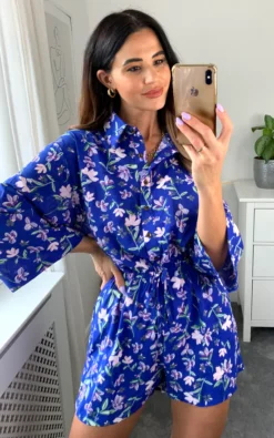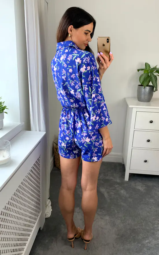 We love this super cute chic D. Anna playsuit with long sleeves and gorgeous floral print in blue. Pair with knee high boots for striking looks or chunky flats for a cool/casual approach.