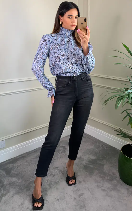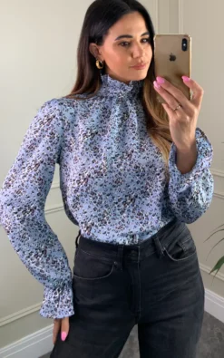 We love this adorable floral print top with frill detail newly designed by D. Anna. Featuring a high neckline design and a frill detailing to create a feminine look. You can team up with jeans for a casual look.