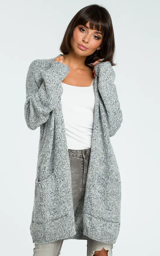 – Long cardigan with ribbed hem