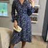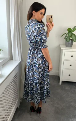 Look totally chic in this fabulous all over floral print midi dress newly designed by D. Anna. It has everything you want – a fabulous print, smocked 3/4 sleeves and high neck feminine silhouette – a perfect must have piece for your wardrobe.