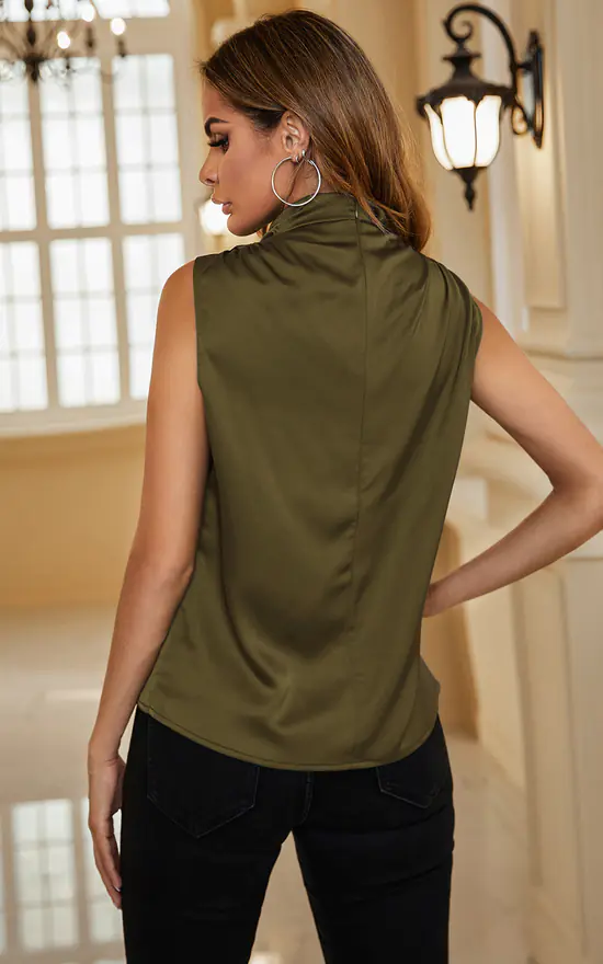 High Neck Sleeveless Blouse In Olive Green