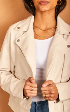 This leather look jacket is chic, stylish and perfect for everyday wear.