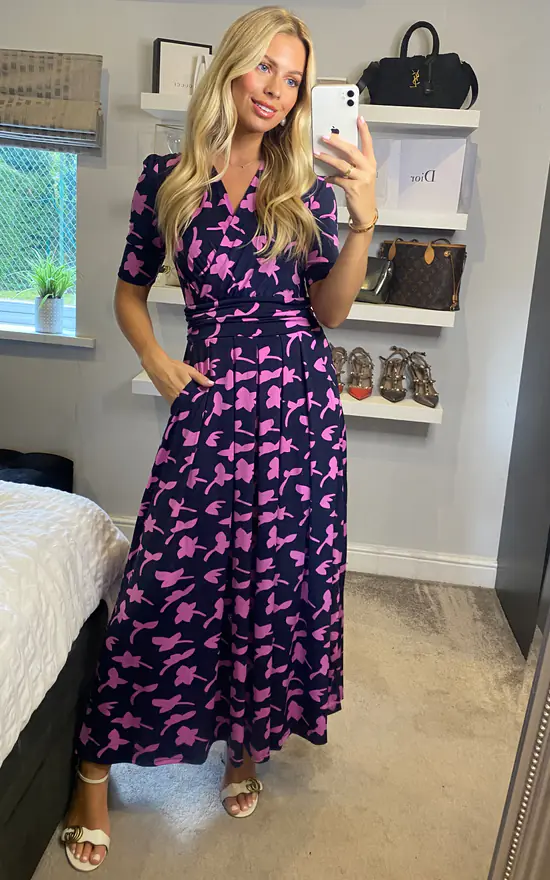 Embrace vibrant prints with this dress from Jolie Moi, a printed jersey design that’s an elegant addition to your wardrobe. Fashioned from soft and stretchy fabric for long-lasting comfort, the cross-over V-neck runs into a ruched elasticated waistband that draws in your silhouette for a form-flattering profile. Finished with side pockets for easy wear, pair with anything from canvas trainers to sleek point-toe heels.