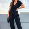 This jersey culotte jumpsuit cinches at the waist with a self-tie belt and its V neck can be easily styled with your favourite pendant. Dress up with block heels or down with white trainers.