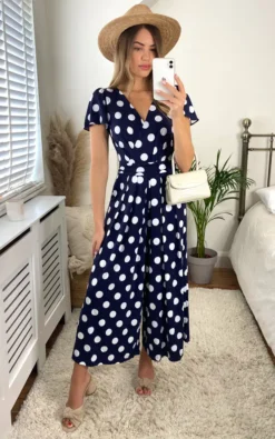 Jump start your new season wardrobe with this chic and versatile jumpsuit from Jolie Moi. This all-in-one piece is a perfect day-to-night wonder. Striking prints with a classic wrap shape and cut in a cropped silhouette creates the perfect smart/casual balance.