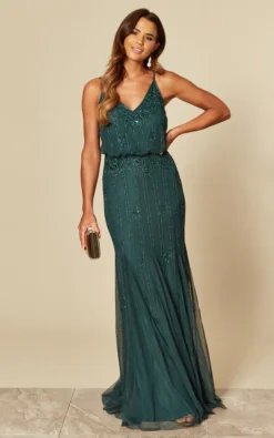 Embellished Sequin Strappy Maxi Dress with Flared Hem and Adjustable Straps