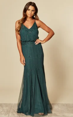 Embellished Sequin Strappy Maxi Dress with Flared Hem and Adjustable Straps