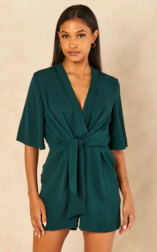 This gorgeous playsuit is a must have! With the kimono style sleeves and matching tie front is perfect for all occasions. Wear with heels for a night out.