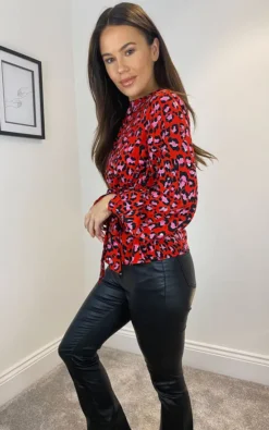 Stand out with our stylish Kirsten this season! Featuring balloon sleeves, tie waist and rounded neck. Pair with leather look trousers or jeans and heels or trainers, style your perfect look.