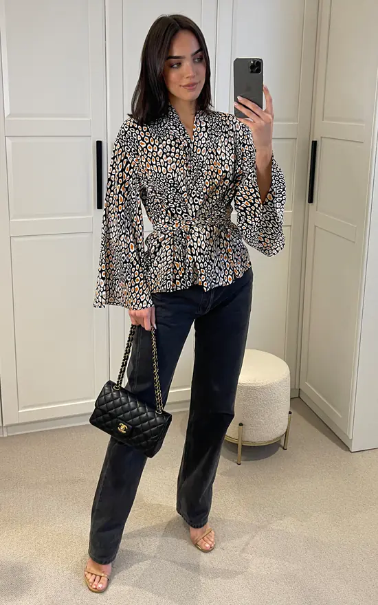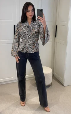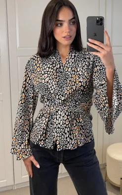Leopard Print Long Sleeve Wrap Top