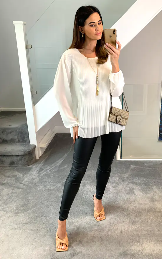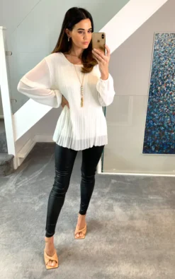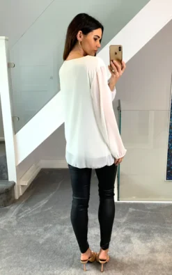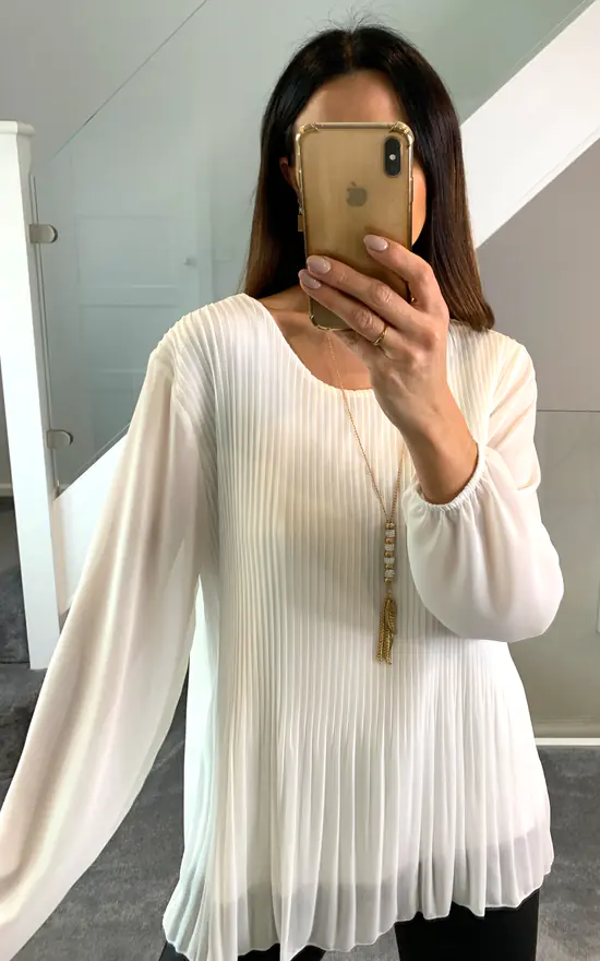 Long Sleeves Oversized Pleated Top with Necklace in White is the perfect choice from day to night. Wear it whether for brunch or date night!