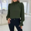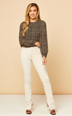 With its ditsy print and sheer puff sleeve, this long sleeve top is classy, cute and perfect for pretty much any occasion.