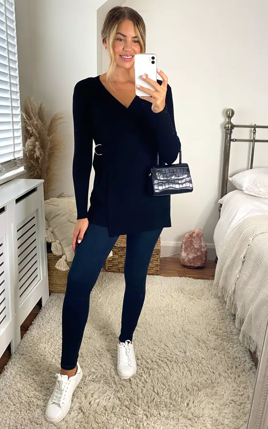 Featuring a wrap design for extra appeal – this black cardigan is a basic that’s far from boring.