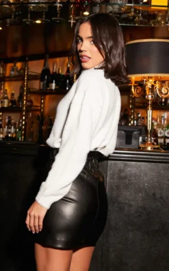 This mini length faux leather paperbag skirt is a great addition this Autum/Winter. It will look great with boots and a chucky knit or heels and a shirt.