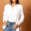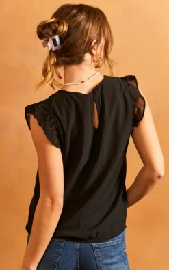 Fuss-free and chic, this frill sleeve top is made for effortless styling. Team with jeans and a pair of heels or midi skirt for a more formal vibe.