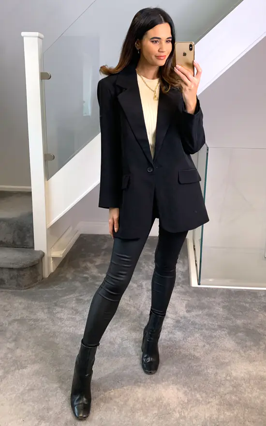 A classic staple with a twist! This oversized black blazer is just what you need. Wear to work for a formal vibe, or over a bralet lace top for drinks.