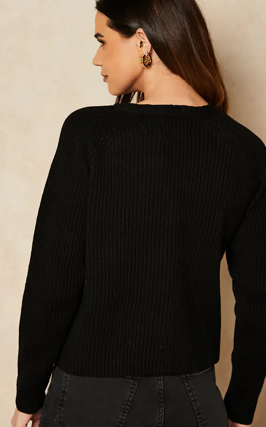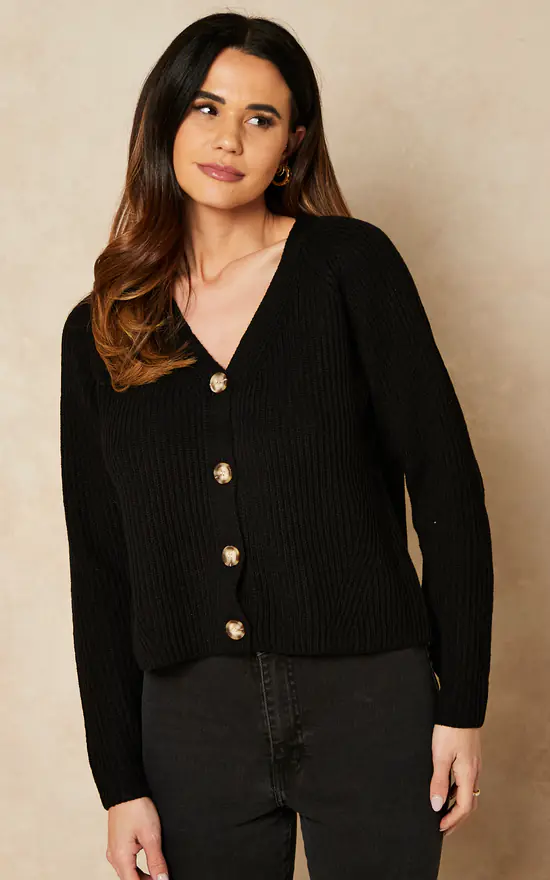 Cosy and chic, this black knitted V neck cardigan is the versatile layer you’ll be living in for this season.