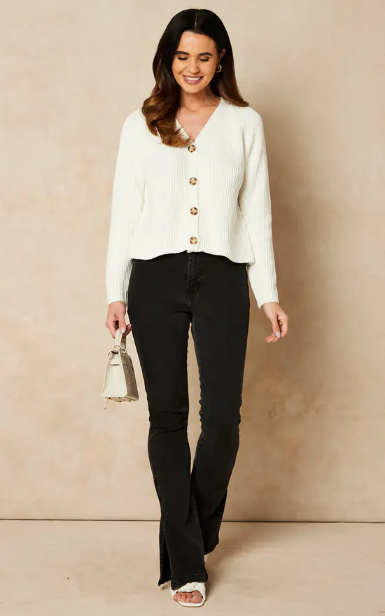 Cosy and chic, this white knitted V neck cardigan is the versatile layer you’ll be living in for this season.