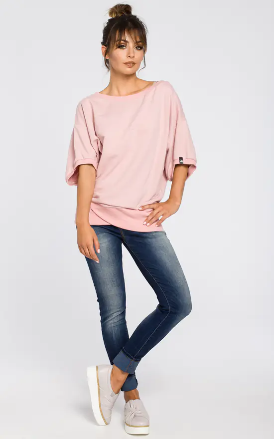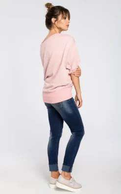 Wrap up in this textured knit fabric oversized blouse with front wrapped panel whenever you need something soft and cosy. Perfect for every day any season.
