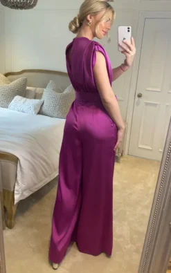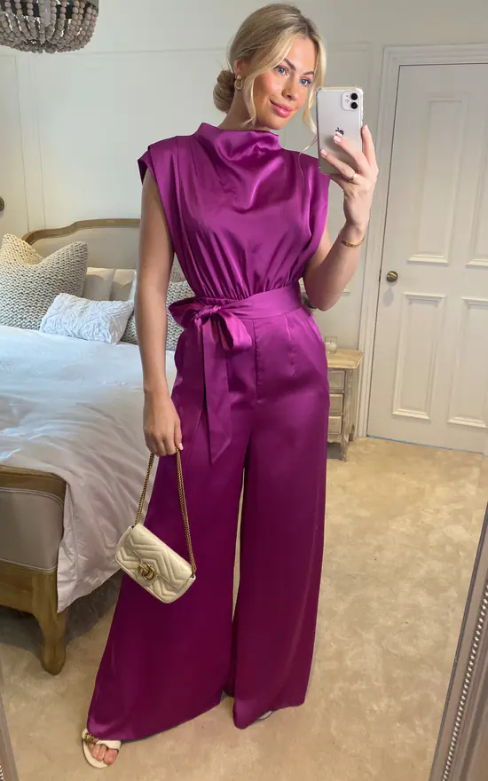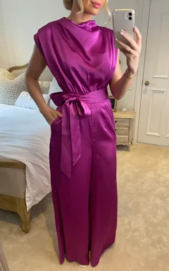 Saffy Orchid Satin High Neck Sleeveless Jumpsuit