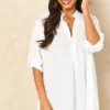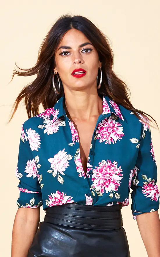 Classic button up shirt. Hip length and full sleeves (model wears tucked in and sleeves rolled up).