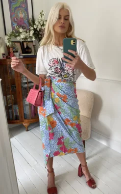 Elegant and flowy, pair this midi skirt with summer sandals or high heels.