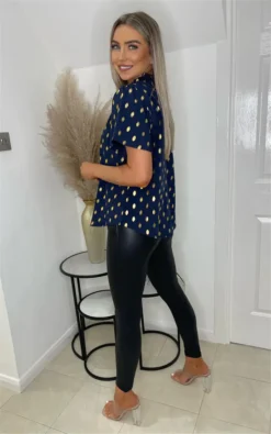 Short sleeve top with gold print detail in navy, perfect every day top for work, or just casual mix and match