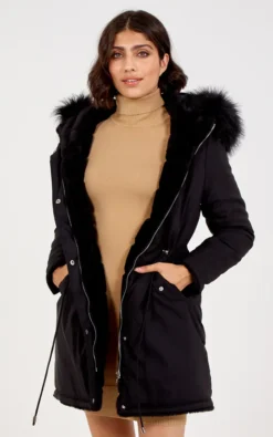 Exclusively by Blue Vanilla. Keep cosy with this reversible shearling coat! The trench jacket with faux shearling fur on the reverse, this is sure to keep you looking on trend and keep you warm for this winter! Featuring double pocket on both sides, longline design and oversize fit for style and comfort. Wear over a jersey top, jeans and compliment with boots to complete your chic winter outfit!