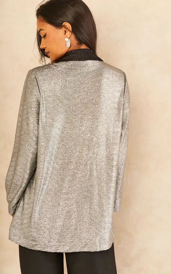 Dazzle on the dancefloor in this striking silver blazer! The one piece wonder that elevates any outfit