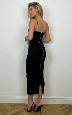 The dress that gives a timeless silhouette, Vesper Viola Black Sweetheart Midaxi Dress. This dress features a plunge sweetheart neckline with thin straps and a centre back gold zip. Made from our luxe super stretch fabric chic never looked so comfortable. Style with strappy heels and a clutch bag to complete your look.