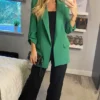 The Yumi Khaki Tie Waist Wrap Blazer is the perfect addition to your wardrobe, wear from work to weekend. The universally flattering shade of khaki will allow you bring a touch of chic to any outfit. The soft fabric, tie waist, wrap around front and pockets make this a must have.